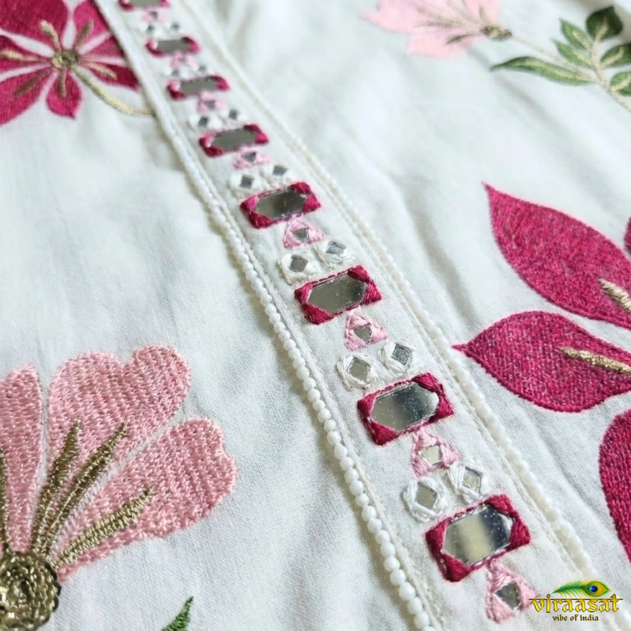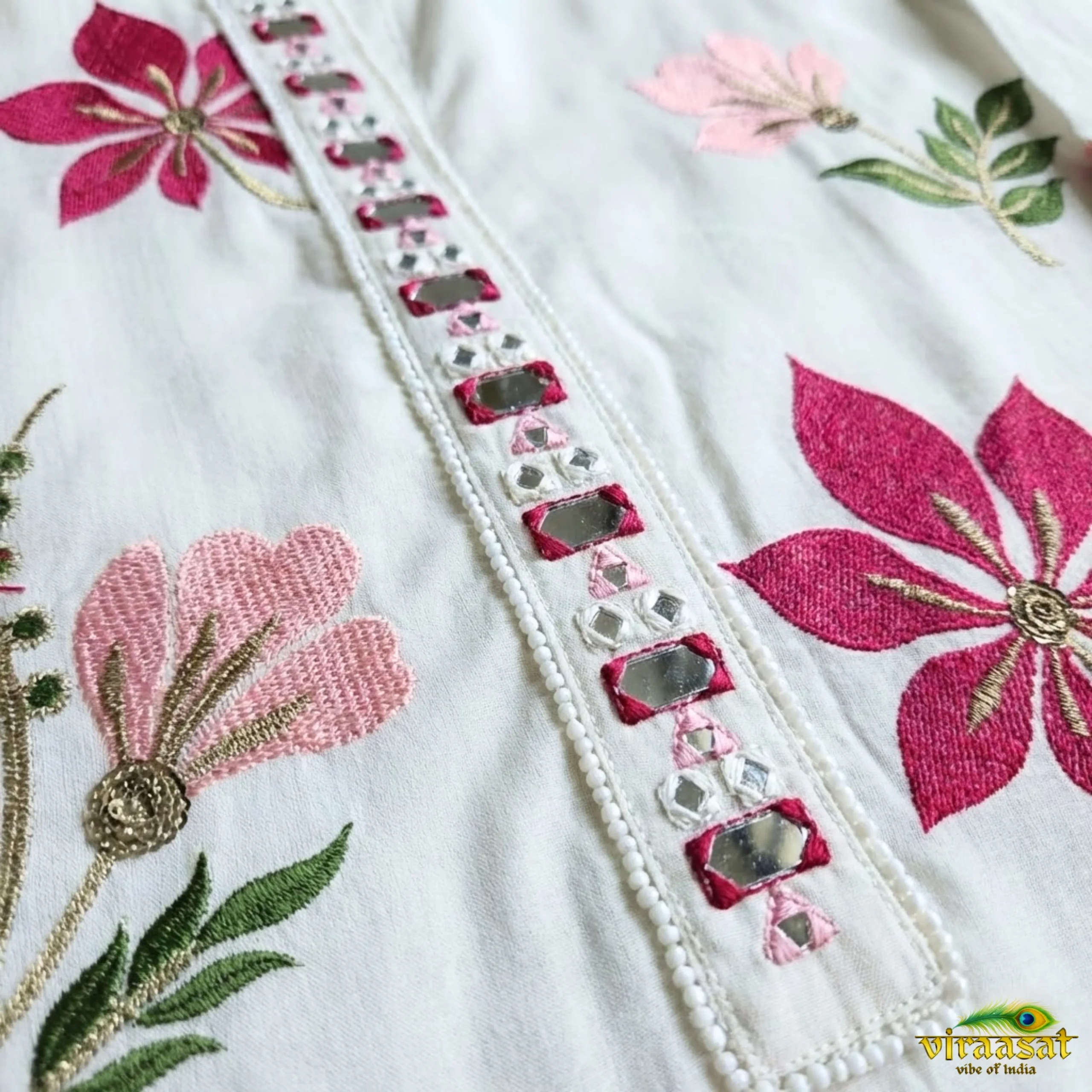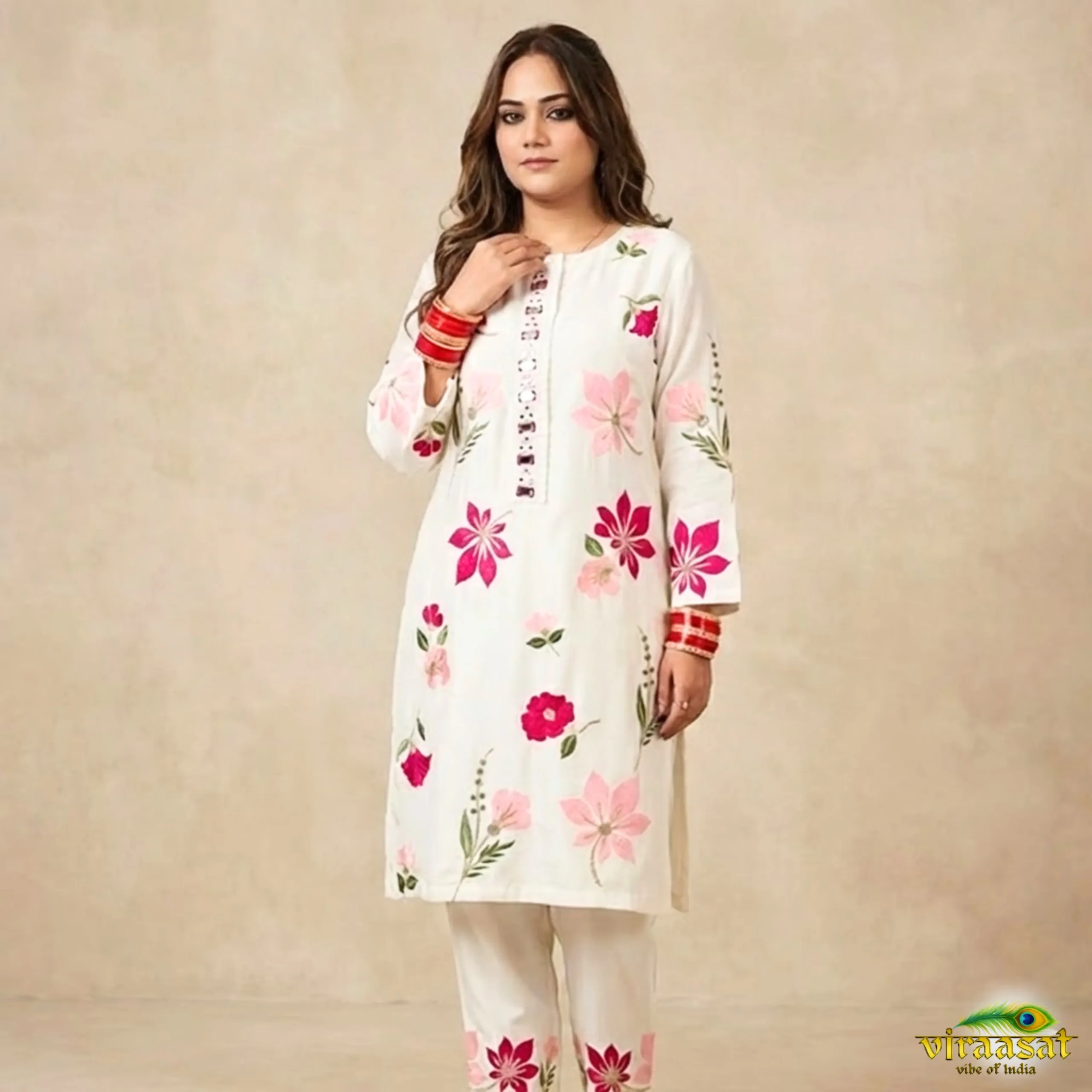 Beautiful and bold flower flowy white paradise cord set – 2 piece with embossed flowers embroidery