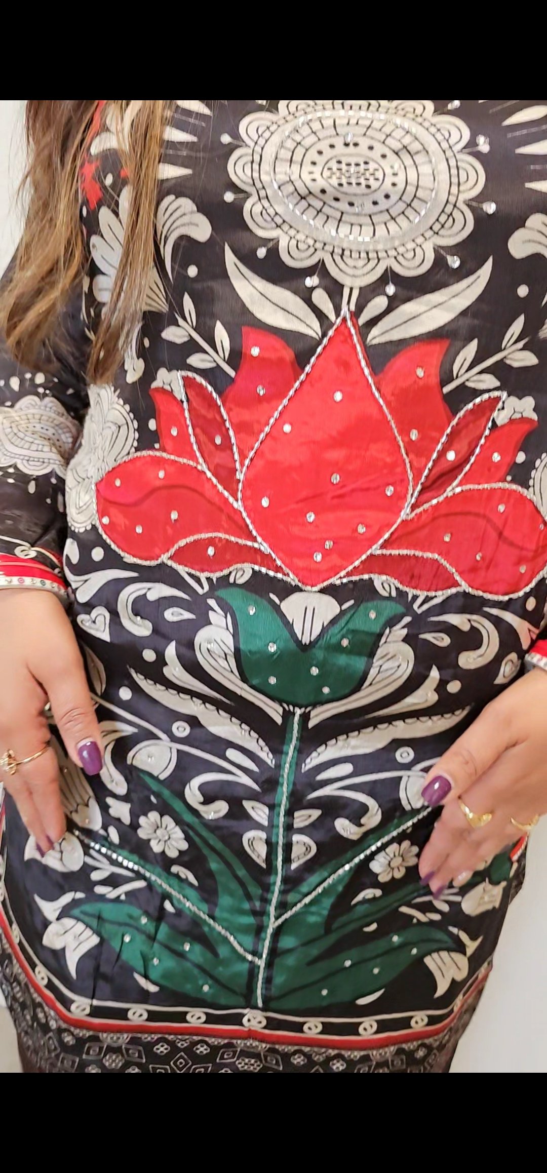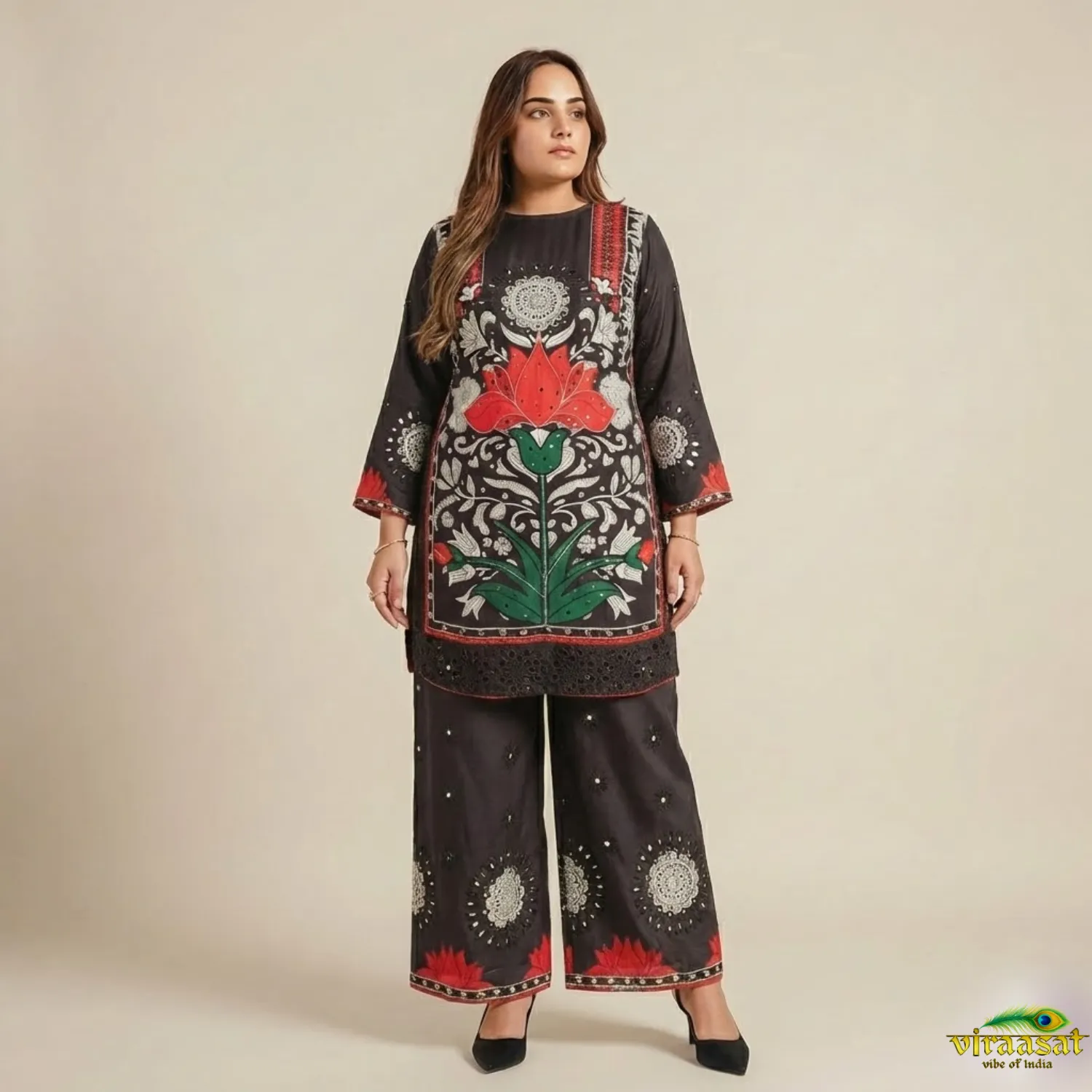 Pure Crepe Trendy Coordset with mirror & cutwork