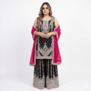 Real Mirror embedded heavy partywear full flaired sharara suit in black and red combination